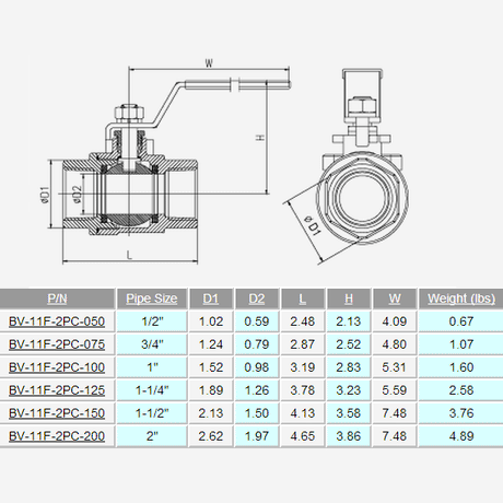 2" Flo-Tite 2-Piece Stainless Steel Ball Valve - Threaded (T80-SS-RRR-L-050)