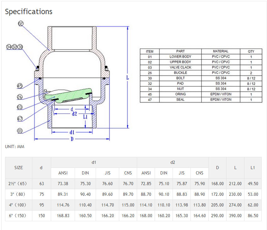 6" Industrial CPVC Swing Check Valve - Viton (SK-CSC-060-V)
