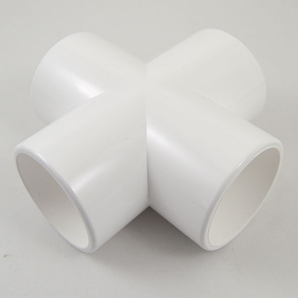 This 1-1/2 inch size cross fitting has four socket ends. Furniture grade fittings like this one have no printing or bar codes on them like standard plumbing parts often do. Furniture grade parts are made for use in PVC projects that are non-plumbing like PVC soccer goals and DIY PVC shelving. To be sure you order the correct size, please refer to the inside diameter measurement listed below. This fitting can be used with or without PVC solvent cement.