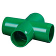 This Green 1/2" Furniture Fitting Cross is meant for use in non-plumbing products. This fitting features a smooth surface with no markings or bar codes on the outside. Furniture grade pvc pipe slips into the socket ends. Great for fun PVC projects, and available here at the best price online! Note: Not designed for liquid handling uses. Not designed for pressurized use.